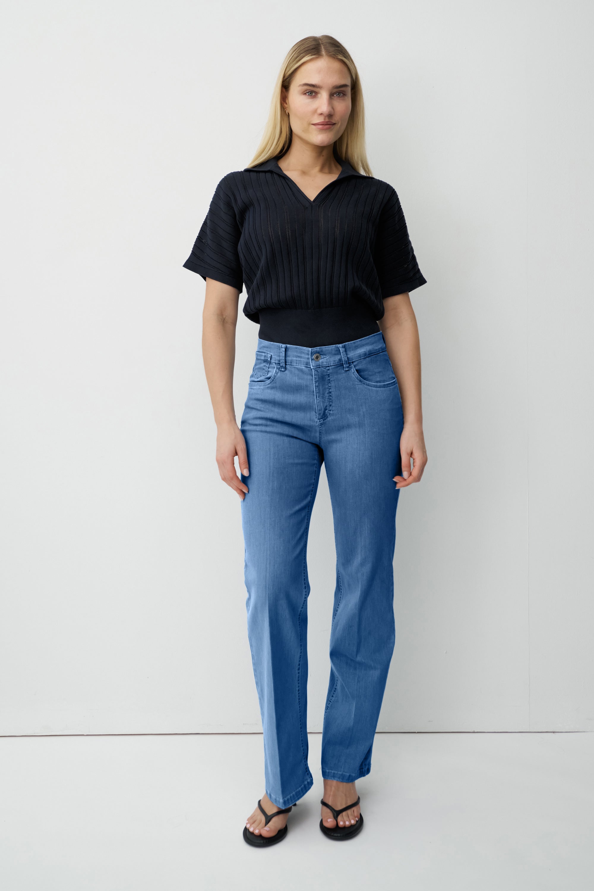- Lange Beinlänge (82 cm) – Die lange Passform eignet sich besonders gut für größere Frauen und sorgt für einen stimmigen Sitz ohne Verkürzung.